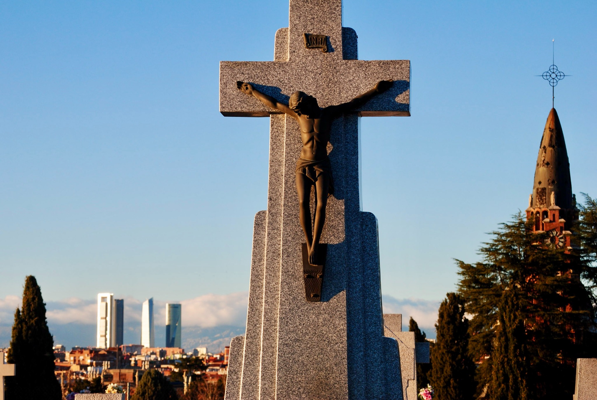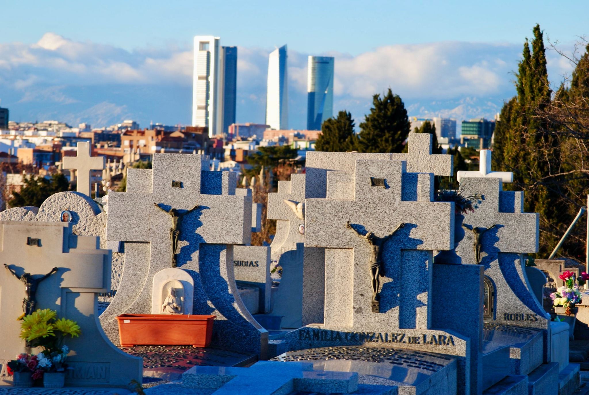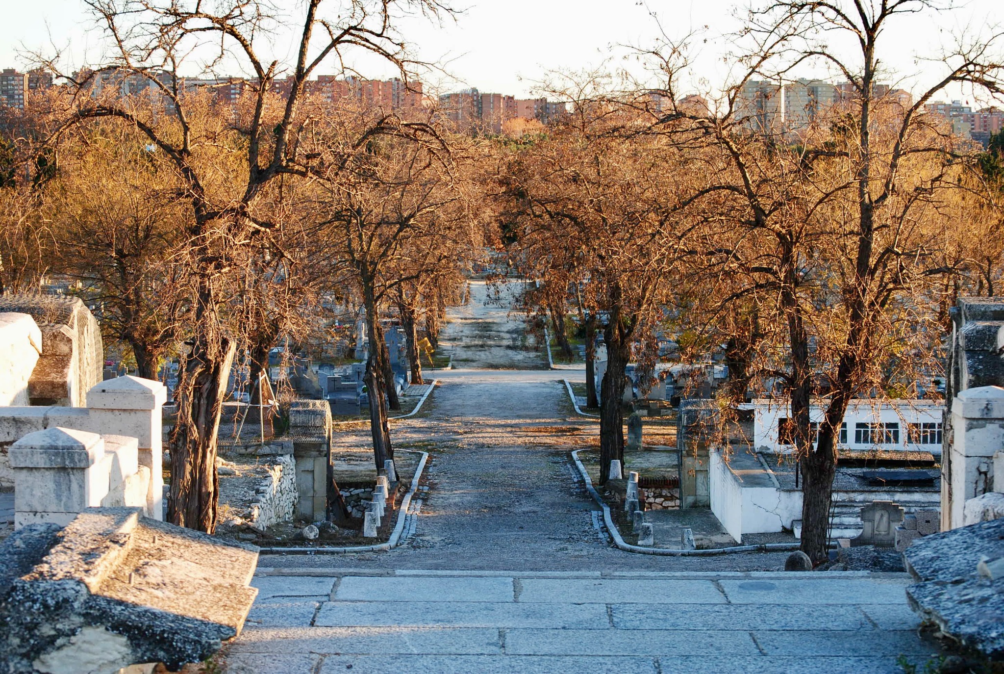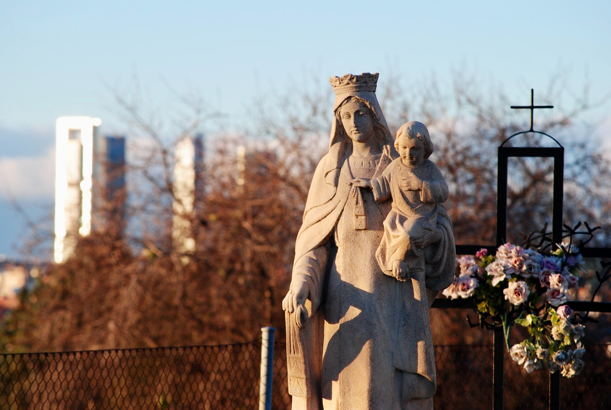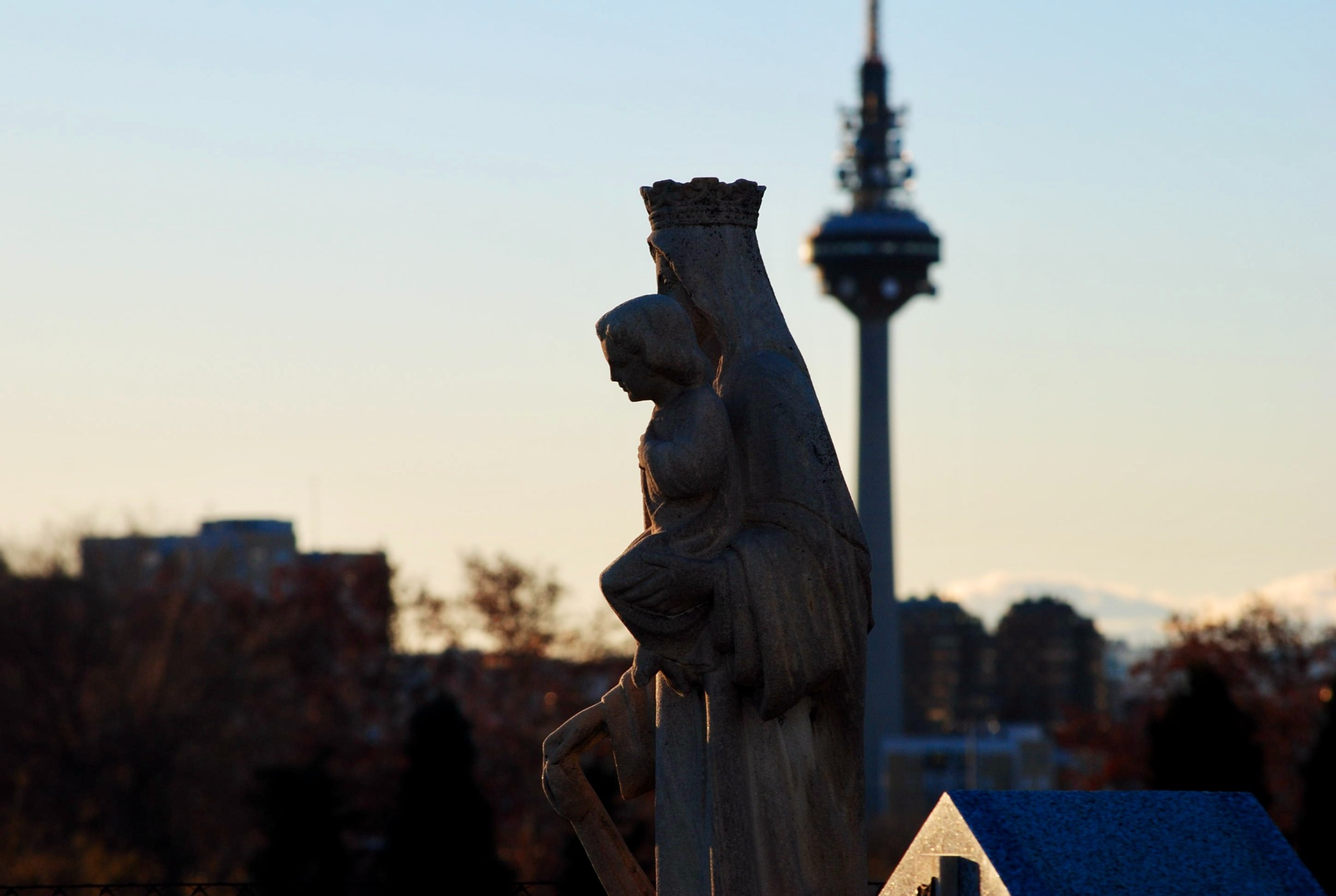 The typical images of Madrid are Gran Via, Sol, El Retiro. I'm not here to show you what everyone else can of Madrid - I want to show you the less visited vantage points and the overlooked neighborhood I live and teach English in - Vallecas. The next couple of photos were taken at Cementerio Municipal Nuestra Señora de la Almudena, a massive, and pretty empty cemetery just east of El Retiro. I had a lot of fun here experimenting with the sunset, statues, and skylines.