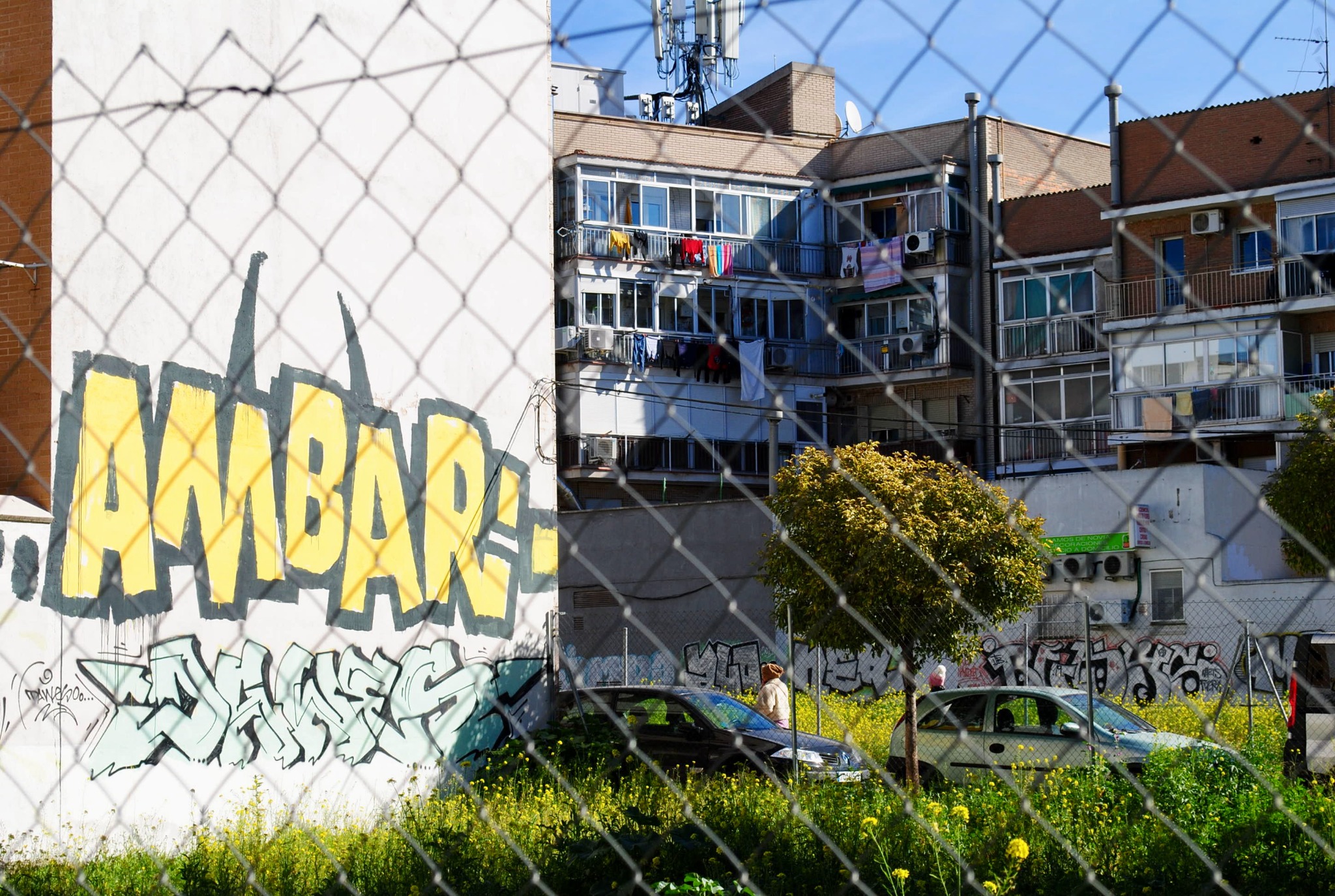 Vallecas is full of these empty lots. No realtors seem to want to build anything here, so the space sits empty yet still "closed off" to the public with high fences. People have obviously made their way into these areas and they mainly serve as a pet relief area. Nature has taken over as these blocks have turned into their own urban garden. It's actually quite charming, to walk outside and be surrounded by wildflowers in such an unexpected place.